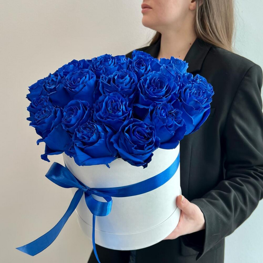 25 синих роз в коробке в Гатчине