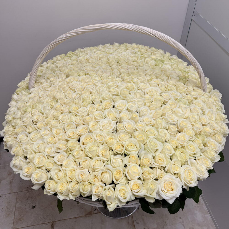 Букет из 501 белой розы в корзине «Нежность» в Гатчине