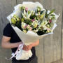 Букет из белых лилий и розовых эустом в Гатчине